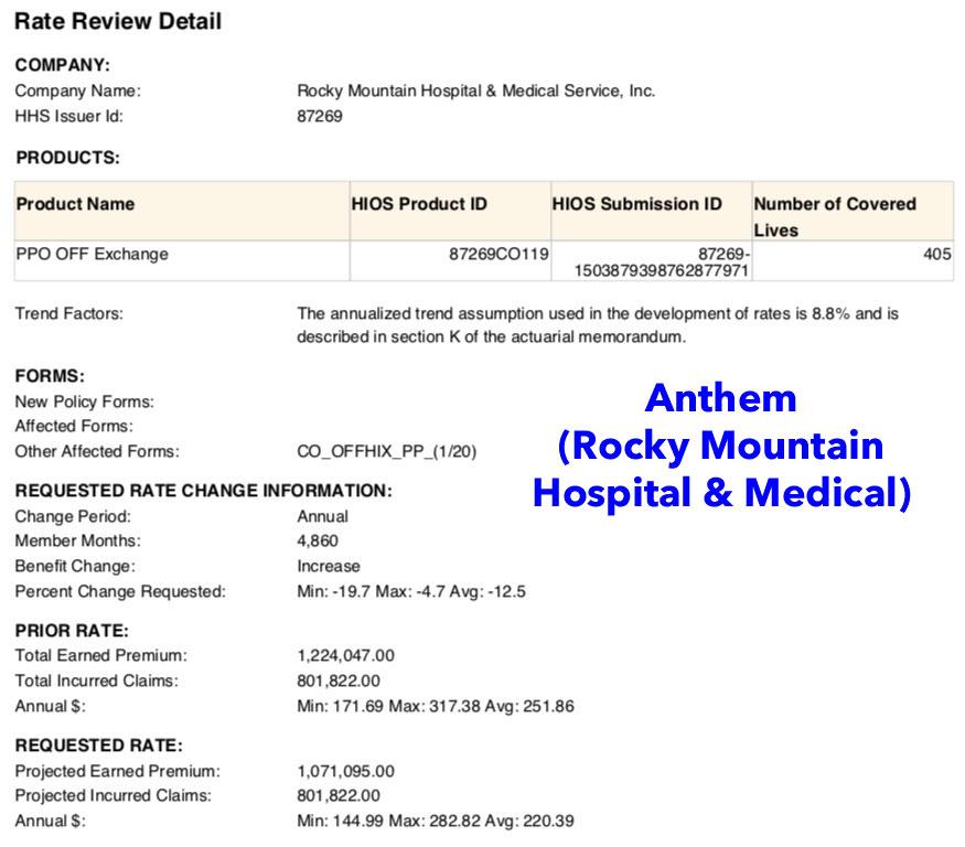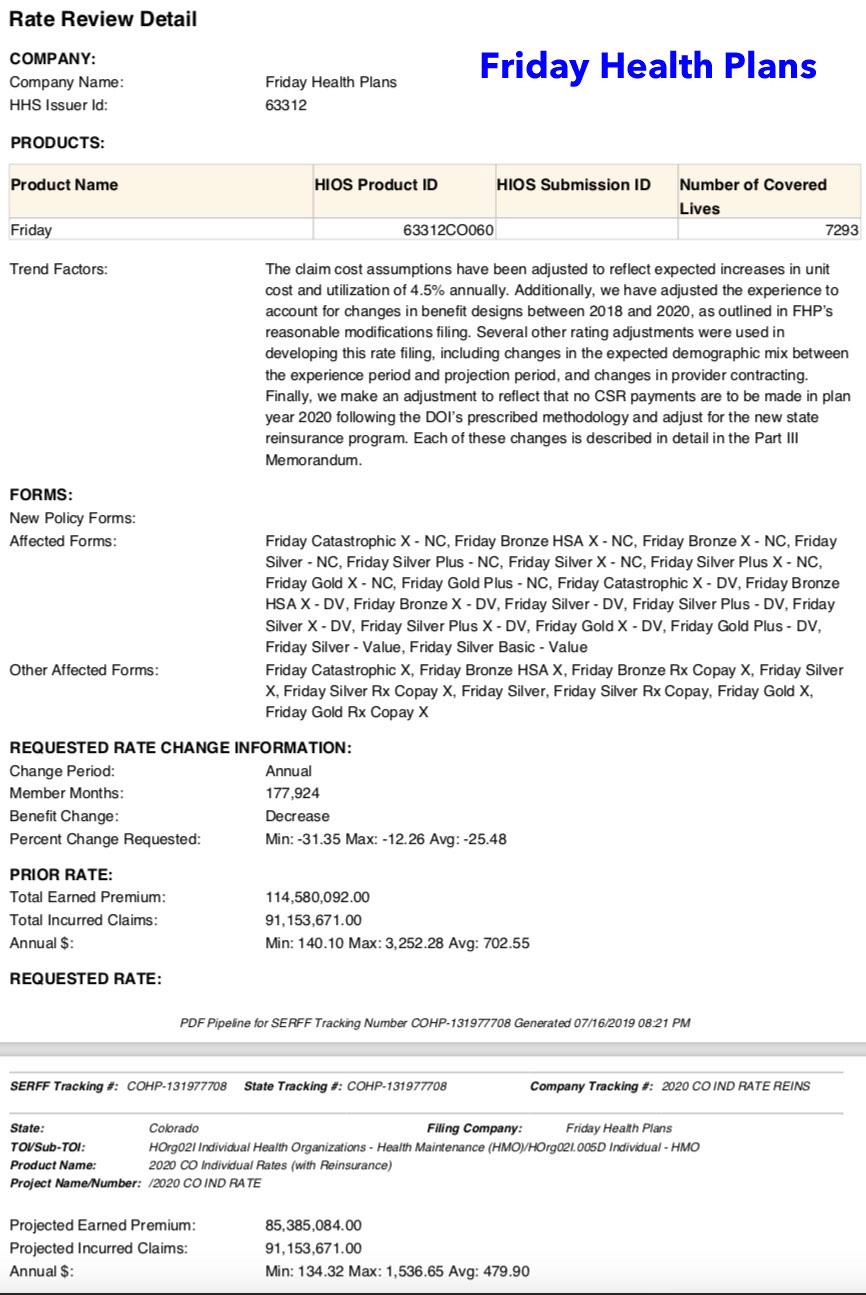 The information below on the companies, plans and requested premium changes is preliminary, and only reflects what the companies have requested, not the final approved plans for 2020. The final, approved plans for 2020 will be made available later this year in late summer / early fall. All of the preliminary 2020 facts and figures are available on the Division's webpage for Health Insurance Plan Filings. Colorado consumers can file formal comments on these plans through August 5.
