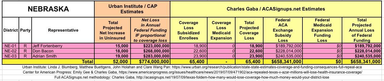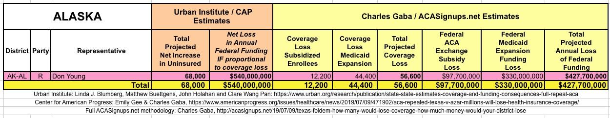 I've also gone further yet by tallying up the coverage loss and federal funding loss using a different method to see how it compares with the Urban's Institute's numbers.