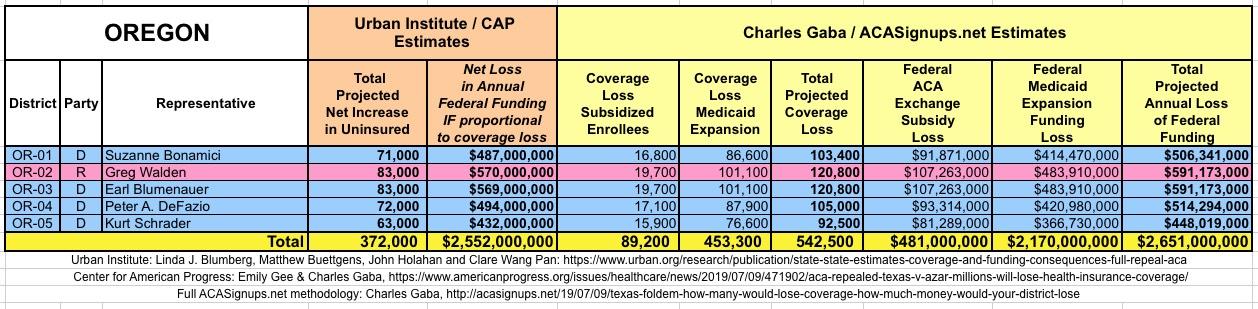 In March 2019, Linda J. Blumberg, Matthew Buettgens, John Holahan and Clare Wang Pan of the Urban Institute ran a detailed analysis to determine what the impact on healthcare coverage would be in every state if the Texas vs. U.S. lawsuit (aka Texas vs. Azar or #TexasFoldEm) caused the Patient Protection & Affordable Care Act (ACA) to be repealed with immediate effect.