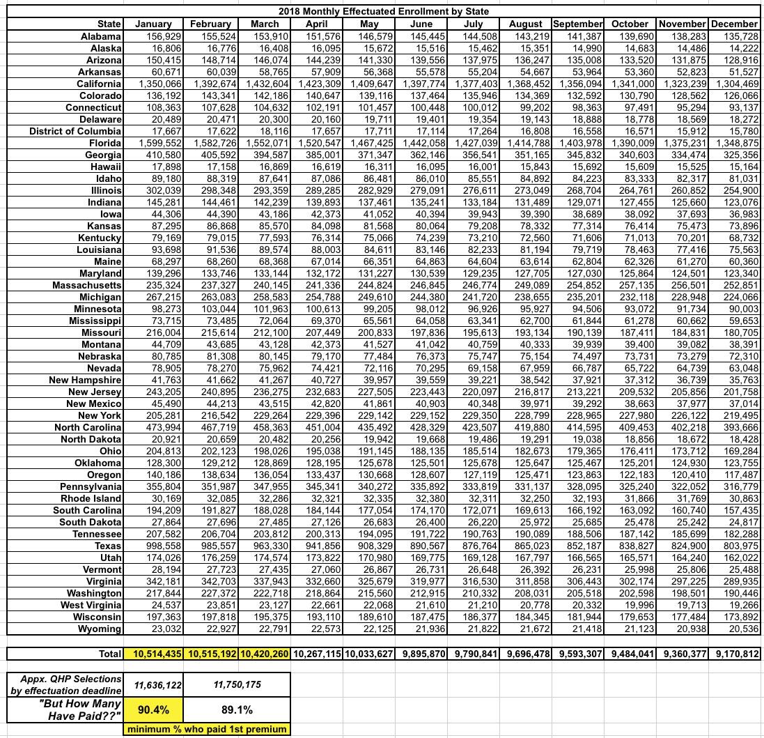 Ffor several months, conspiracy theories abounded about how many of those who selected Qualified Health Plans (QHPs) from the ACA exchanges actually followed through and paid their first monthly premium, thus actually being enrolled in effectuated policies.