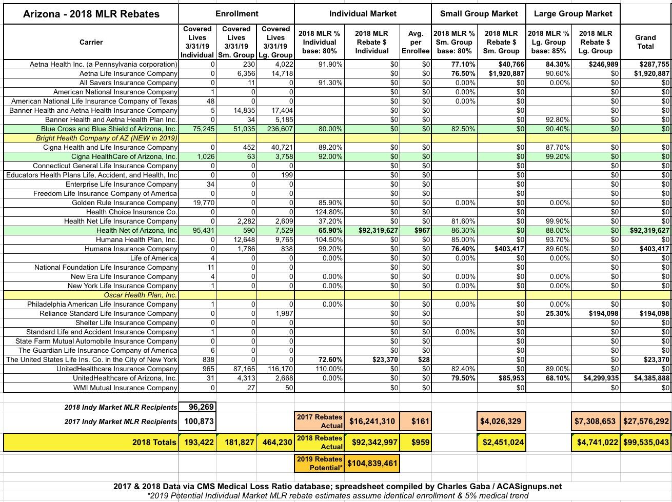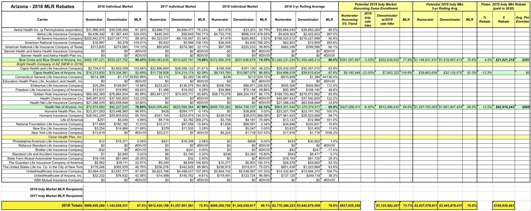 Exclusive! Arizona: 2018 MLR Rebate Payments (& potential 2019 rebates)