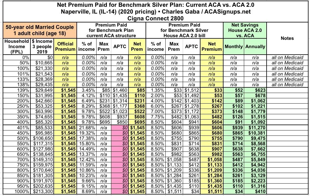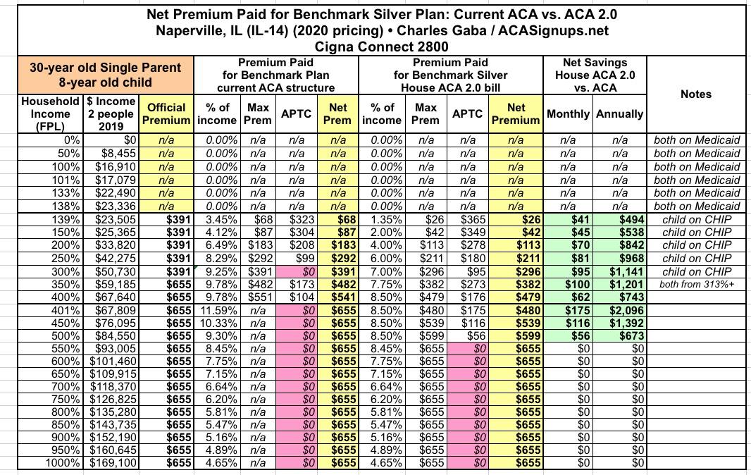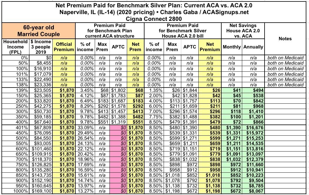 Under ACA 2.0, again, they'd pay no more than 8.5% in premiums, reducing their net premiums from $1,870/month down to as little as $480/month, a reduction of a whopping $16,600/year.