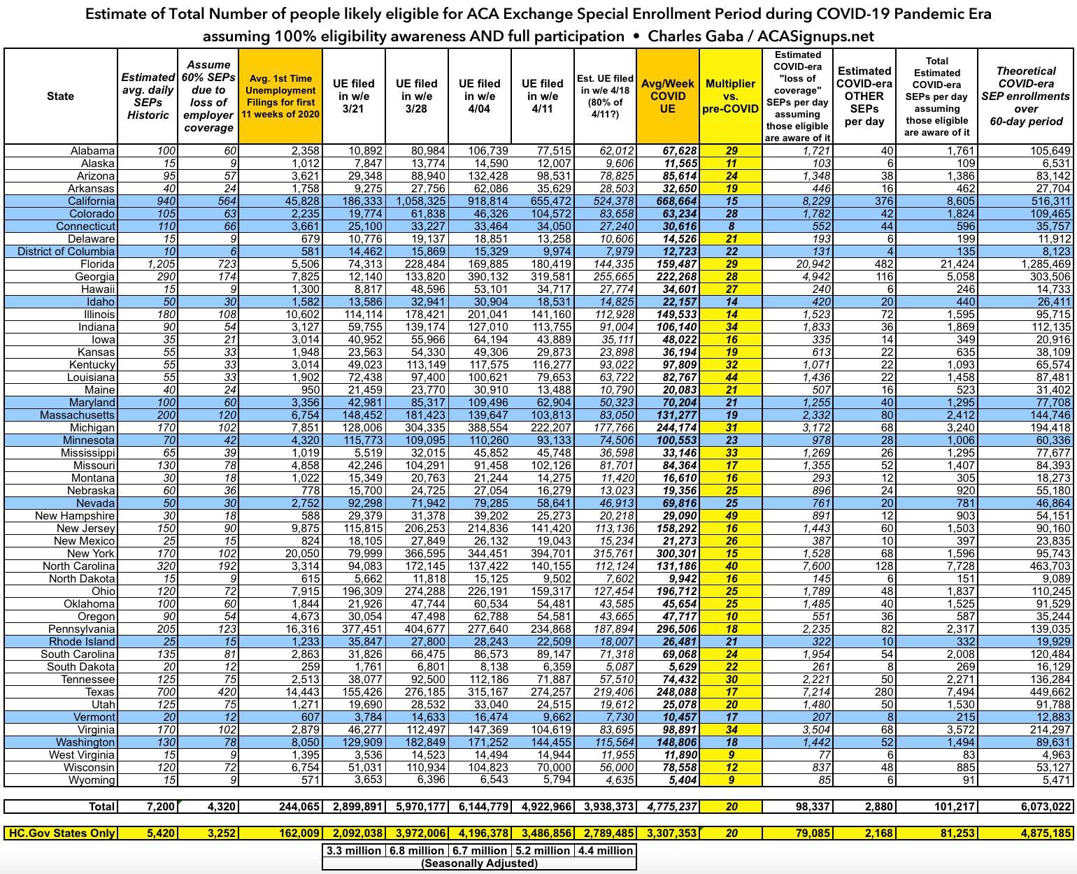 So, we know that perhap ~8,000 people historically enroll via SEPs per day nationally. And I've projected that perhaps 41,000 - 54,000 additional people would enroll per day nationally if an "open" COVID-19 SEP was available in all 50 states + DC.