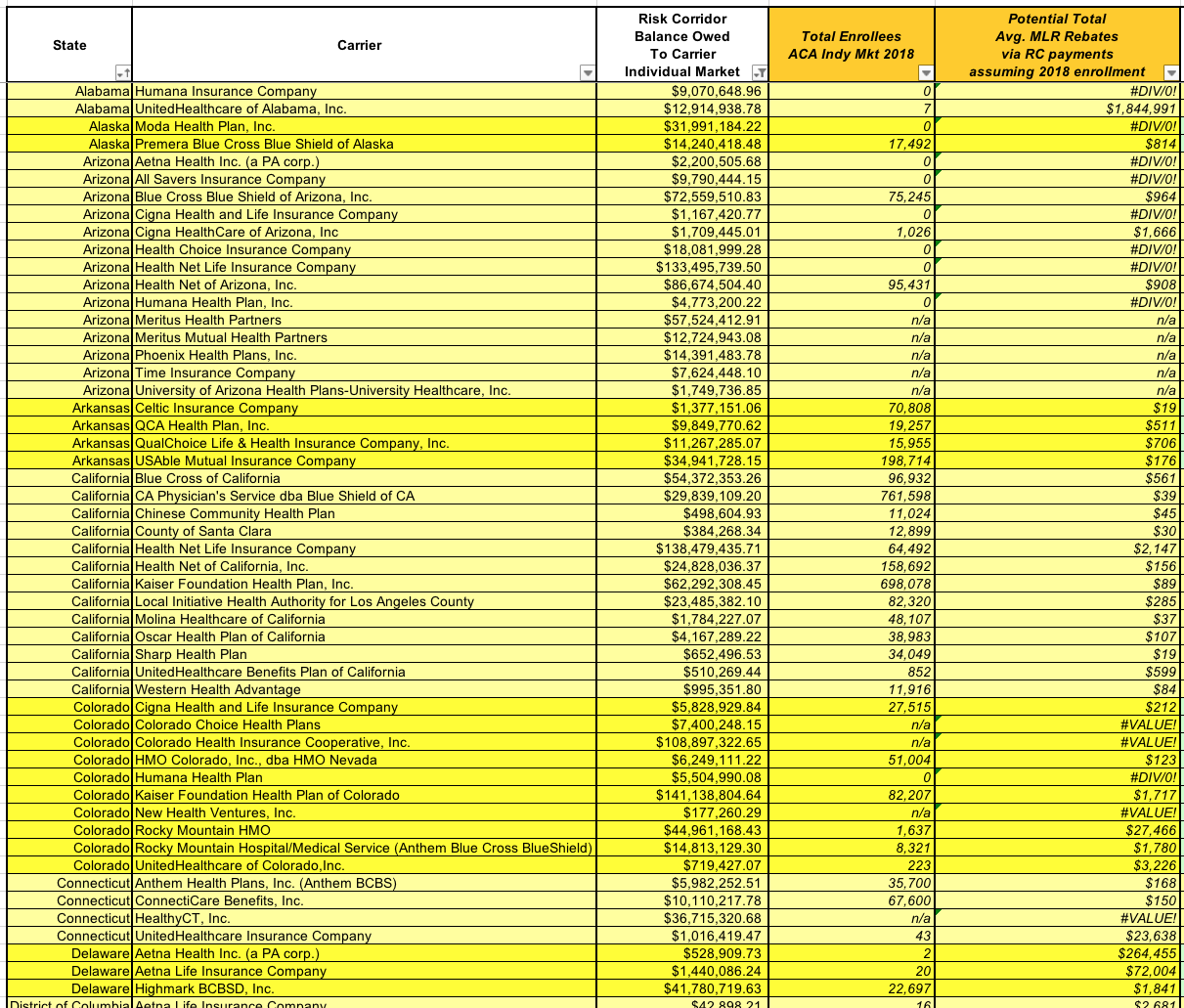 Note that I'm only focusing on the individual market here. Around $1.3 billion in RC payments are owed to small group carriers as well, but the Indy market is already a pretty big project. I might go back and do the same for the sm. group market as well in the future.