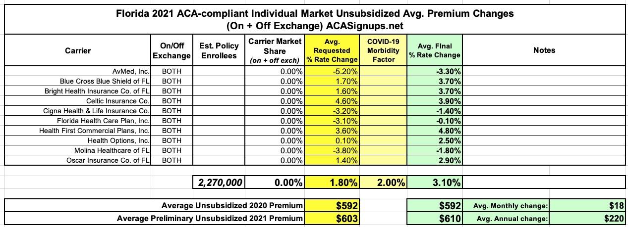 Florida: *Approved* avg. 2021 #ACA premiums: +3.1% individual market; +3.4% sm. group
