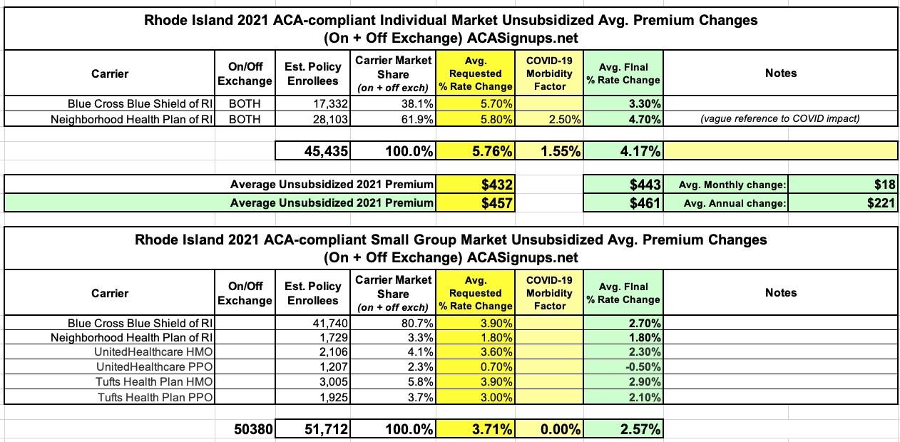 Rhode Island: *Approved* avg. 2021 #ACA premium rates: +4.2% indy, +2.6% sm. group