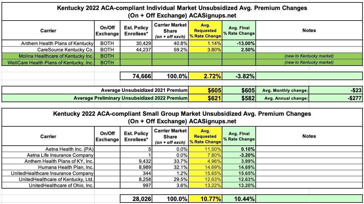 UPDATE 10/27/21: Added approved rate changes for Ohio, Tennessee, South Dakota, North Carolina & Arkansas, along with some updates/corrections to enrollment data & carrier participation for a few other states. Also revised estimated total market enrollment for the 7 states which I don't have hard data available for.