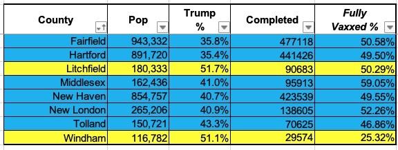Connecticut: #COVID19 vaccination rates by county & partisan lean