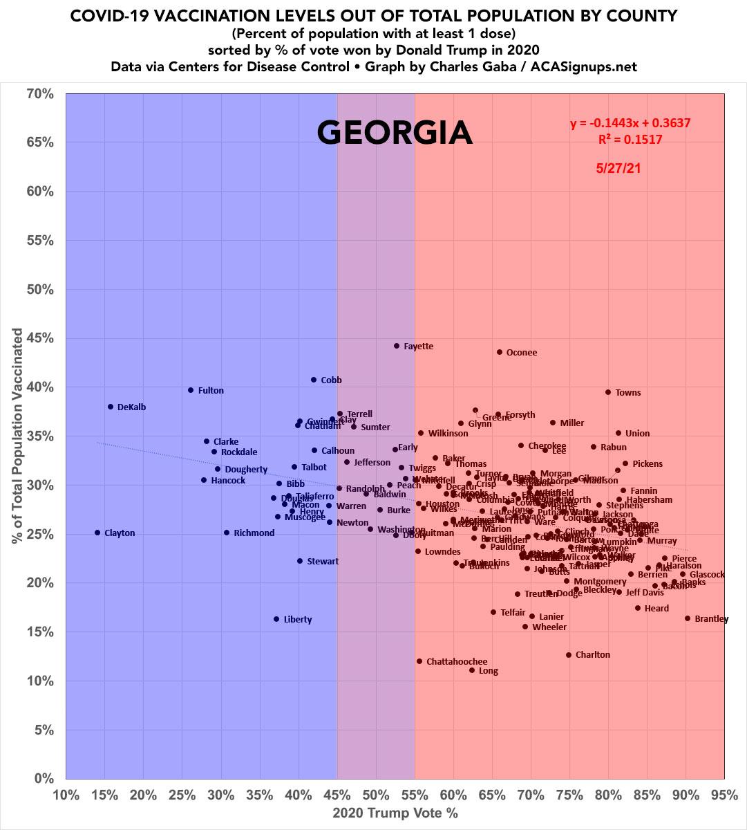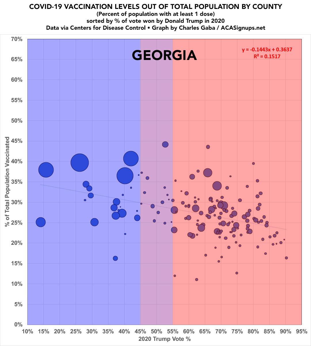 Georgia: #COVID19 vaccination rates by county & partisan lean