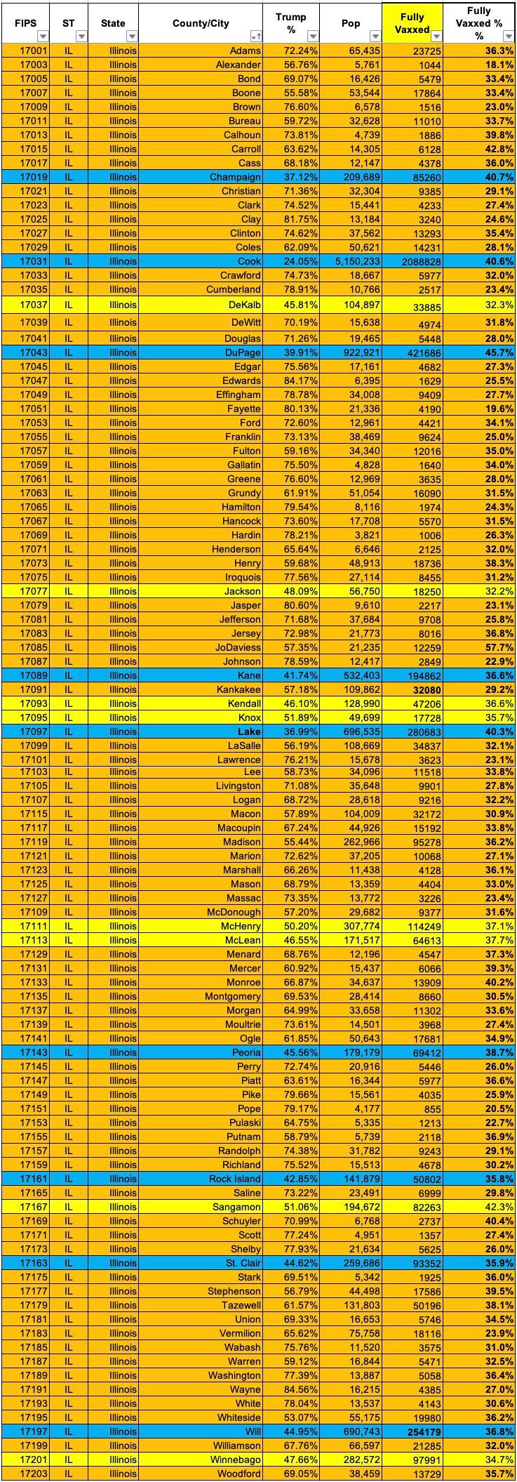 Illinois: #COVID19 vaccination rates by county & partisan lean