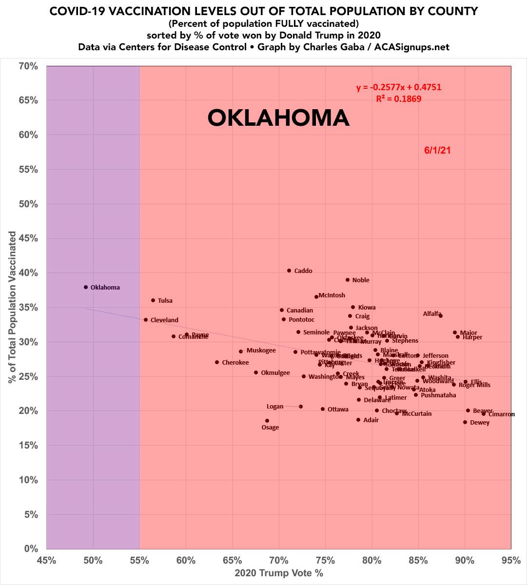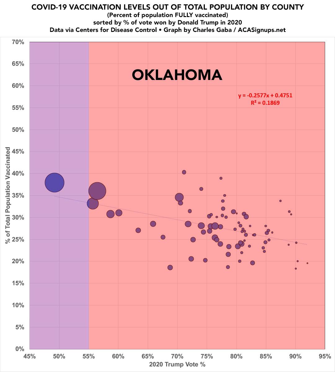 Oklahoma: #COVID19 vaccination rates by county & partisan lean