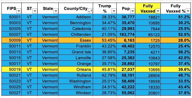 Vermont: #COVID19 vaccination rates by county & partisan lean