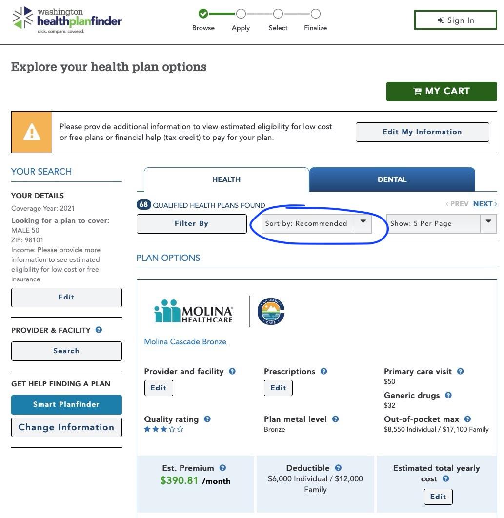 As for whether they're "right" to make Cascade Care plans the "Recommended" option, that depends on your POV. Being able to easily compare plans based purely on premiums & network and having more services covered at no out-of-pocket cost are important advantages for most people, though it's hard to say that's enough to justify them as being "recommended." I just think it's something to keep an eye on.