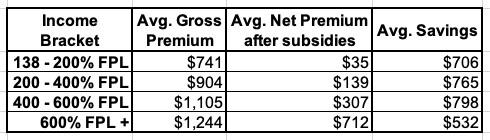 Eligible middle-income households (those earning between $51,040 to $76,560 for an individual and $104,800 to $157,200 for a family of four) are saving an average of nearly $800 per month as their premiums have been reduced by more than 70 percent.
