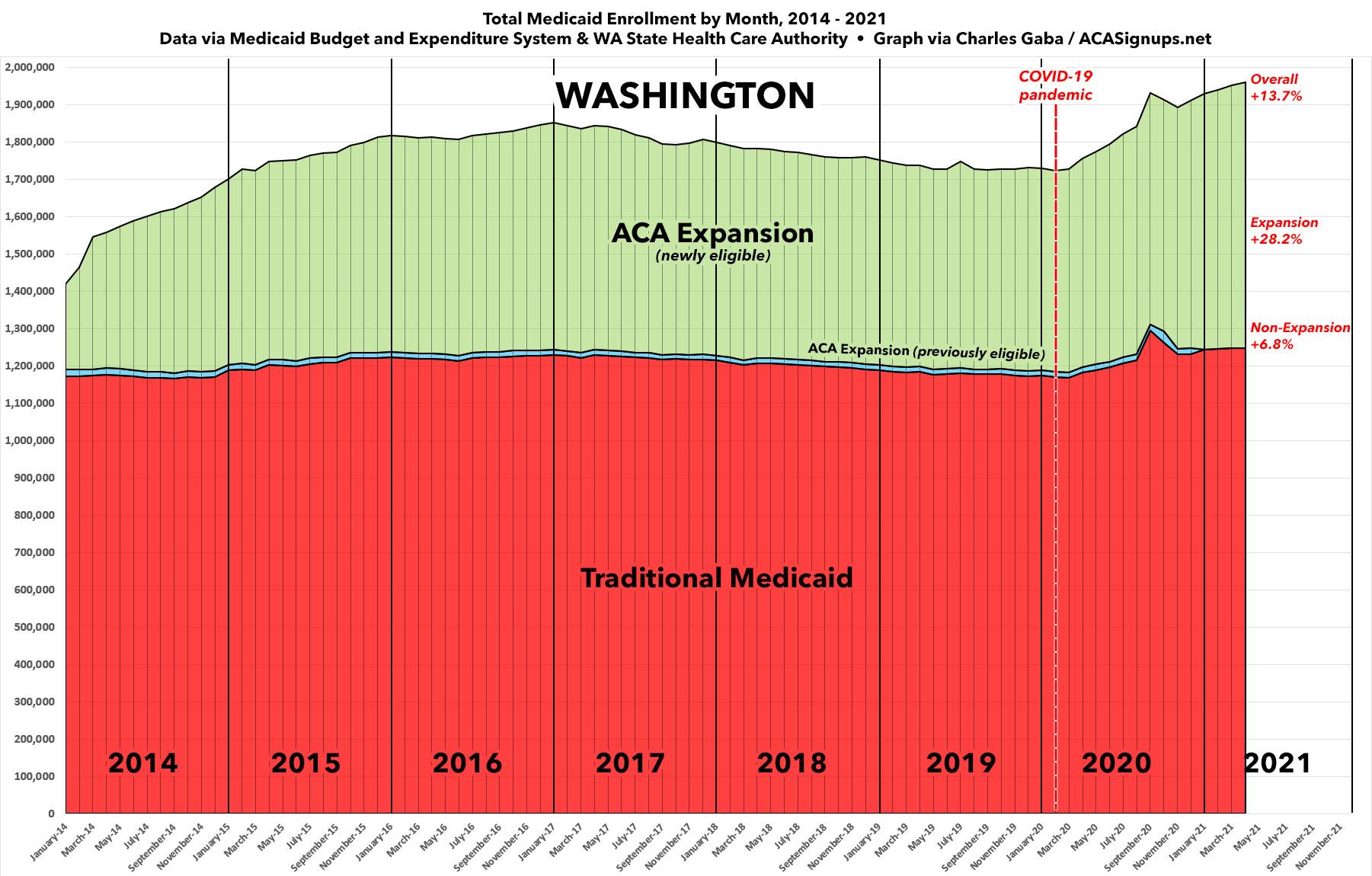 Washington State: Medicaid expansion enrollment up 28% since COVID hit; total Medicaid up 14%