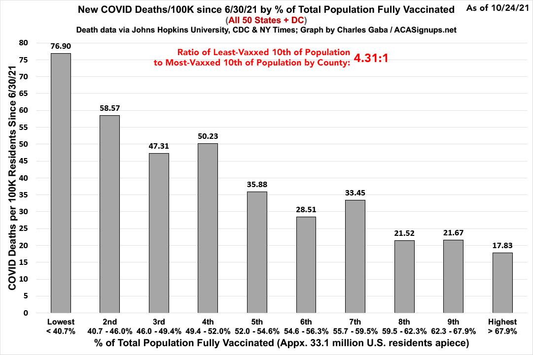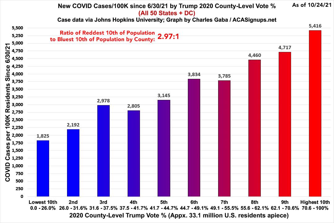 As you can see, case rates since June are 2.29x higher in the least-vaccinated tenth of the country than in the most-vaccinated tenth...