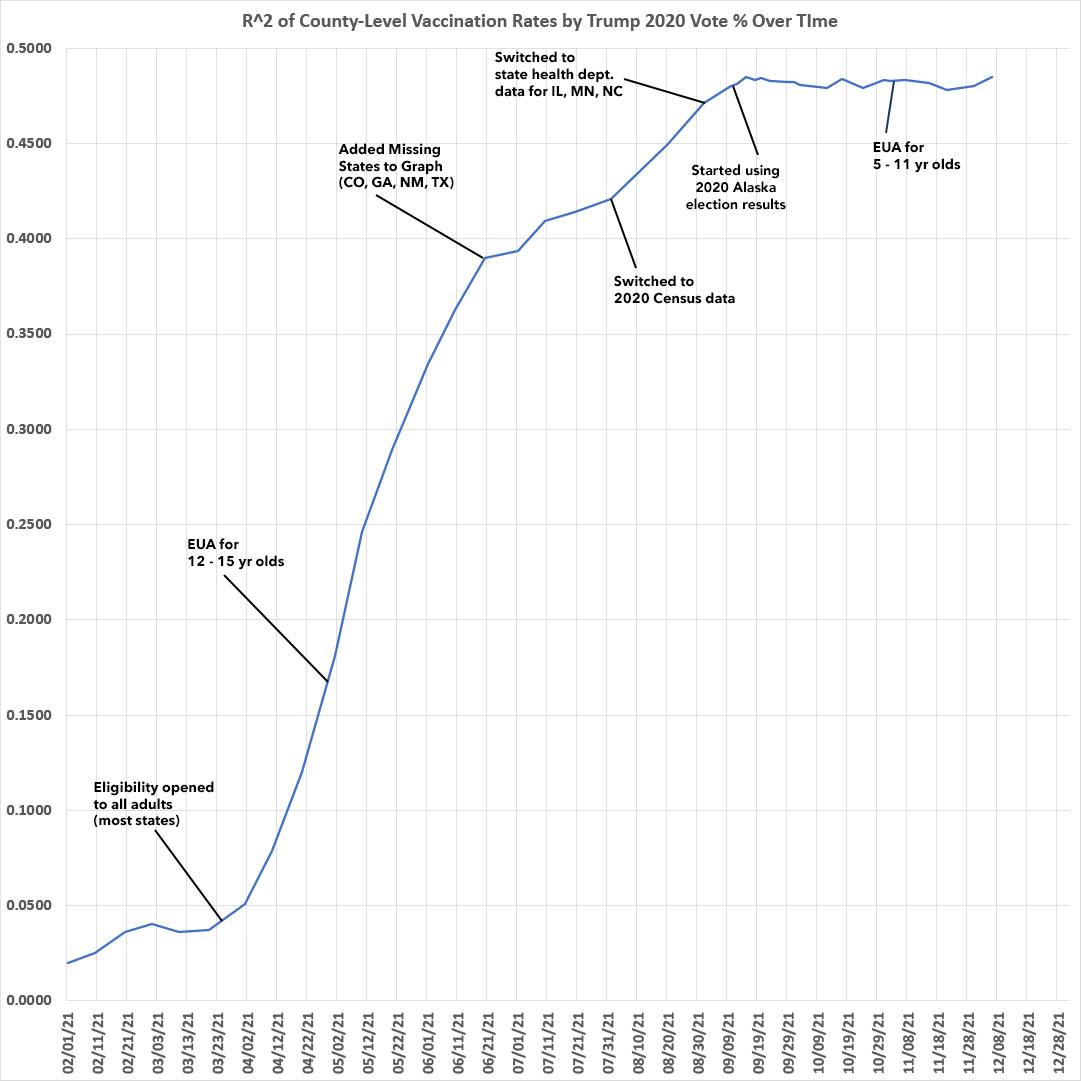 Weekly Update: U.S. #COVID19 vaccination levels by COUNTY & Partisan Lean