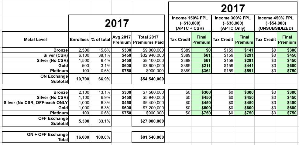 For purposes of this exercise, I'm also going to assume that the enrollee has chosen a Silver policy for 2017.