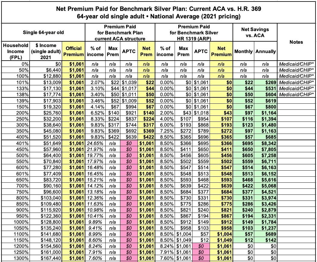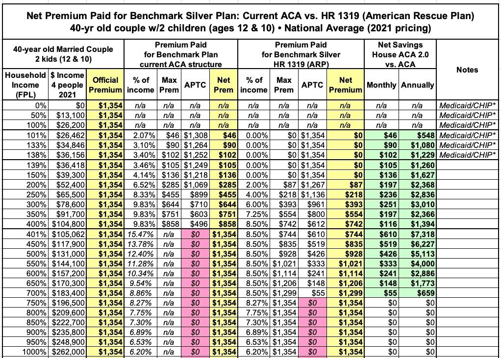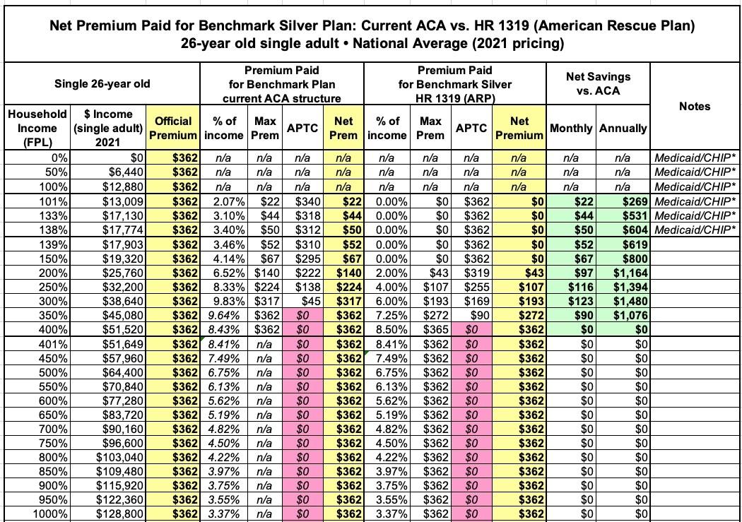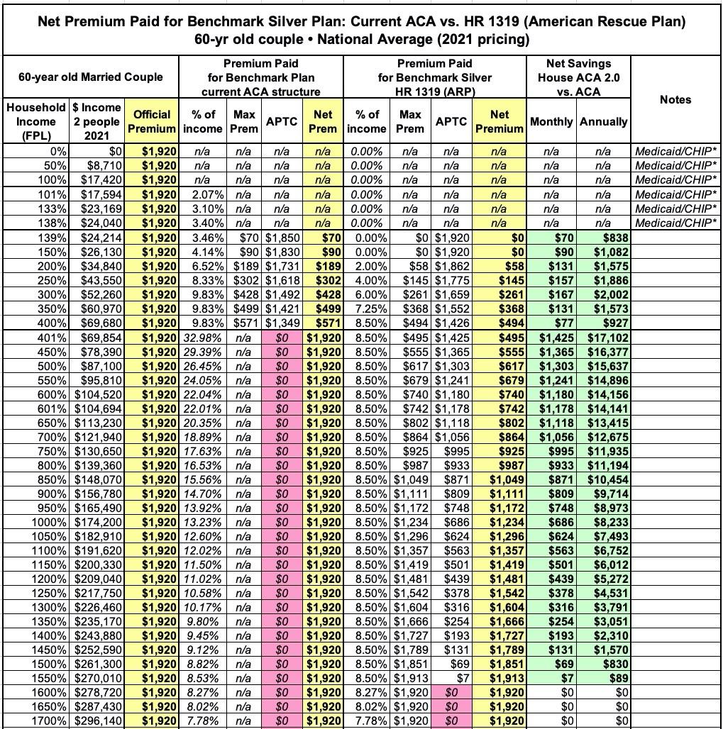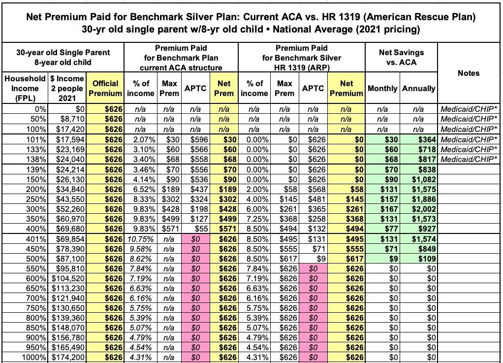 In this version I'm using the actual Advanced Premium Tax Credit (APTC) table under the American Rescue Plan, and I'm cutting out all references to the other two tables to avoid confusion.