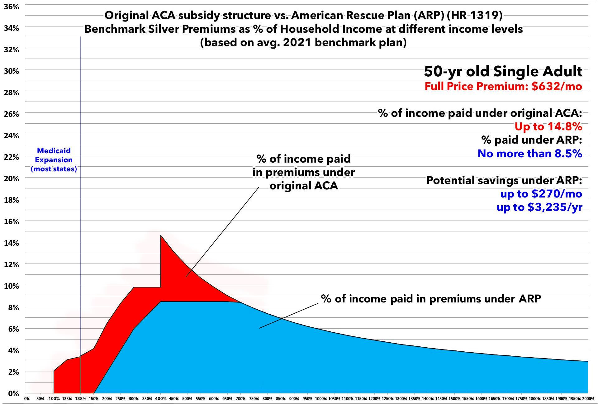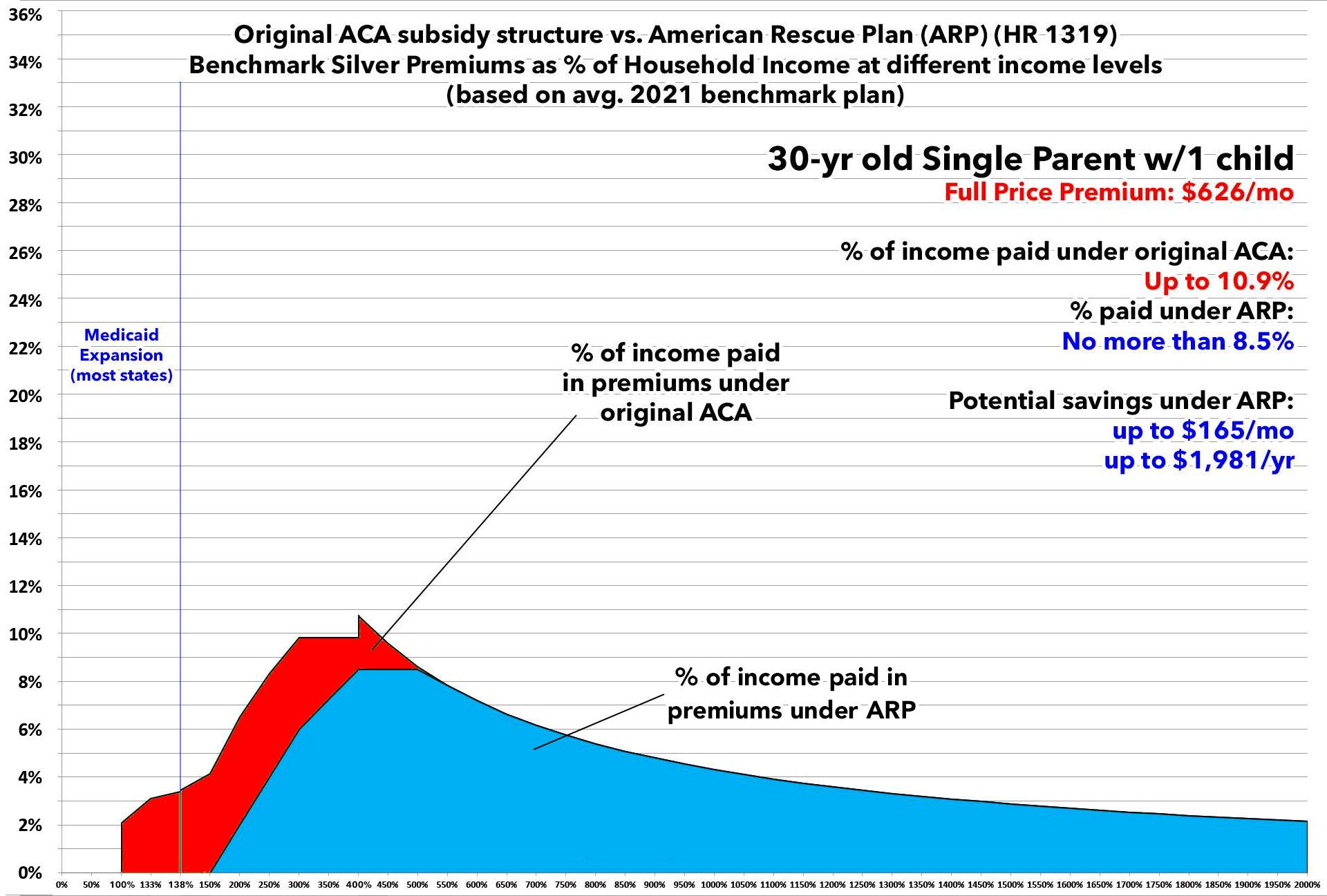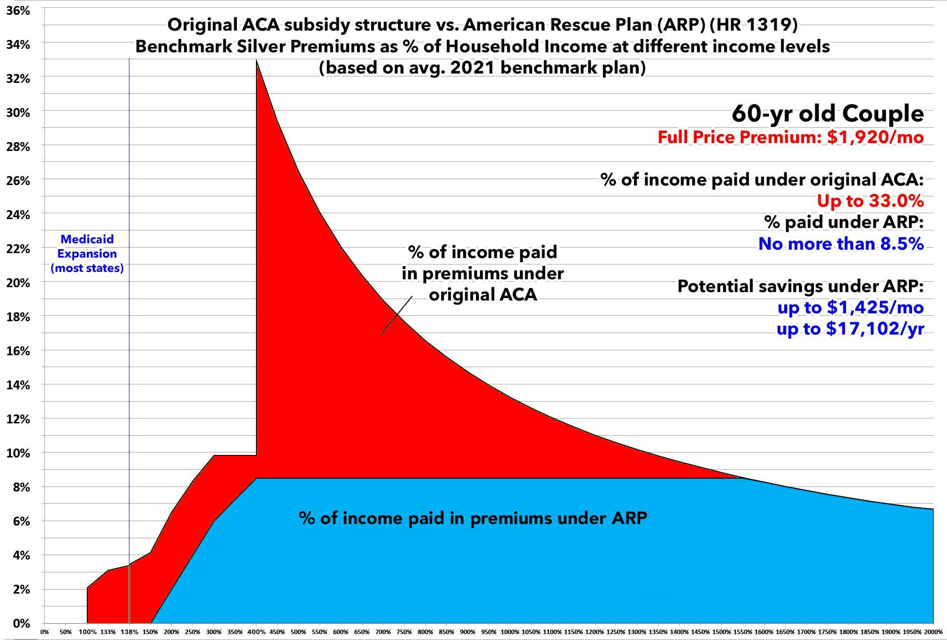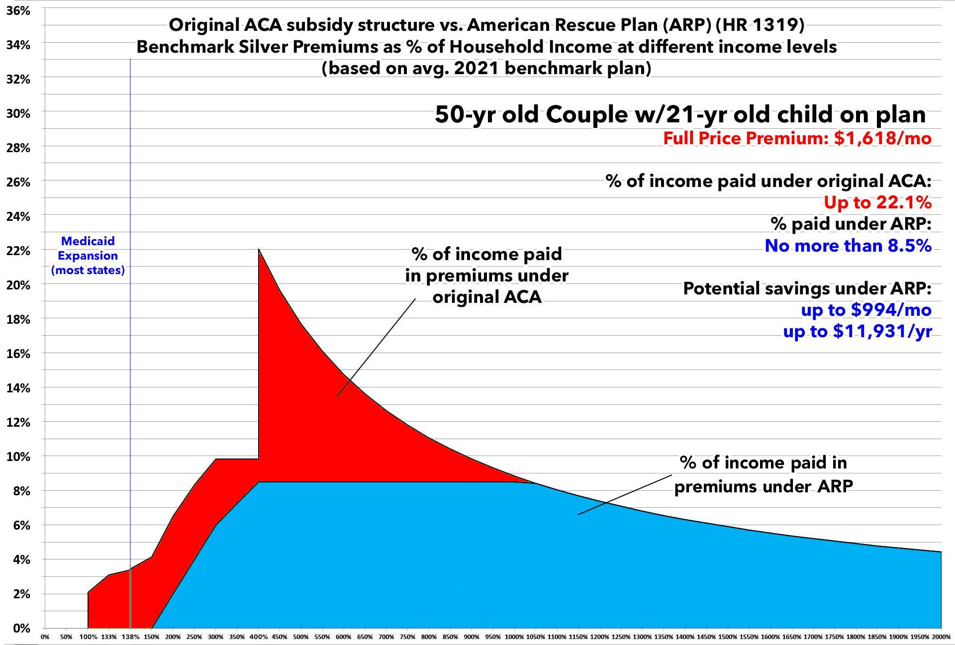 In this version I'm using the actual Advanced Premium Tax Credit (APTC) table under the American Rescue Plan, and I'm cutting out all references to the other two tables to avoid confusion.