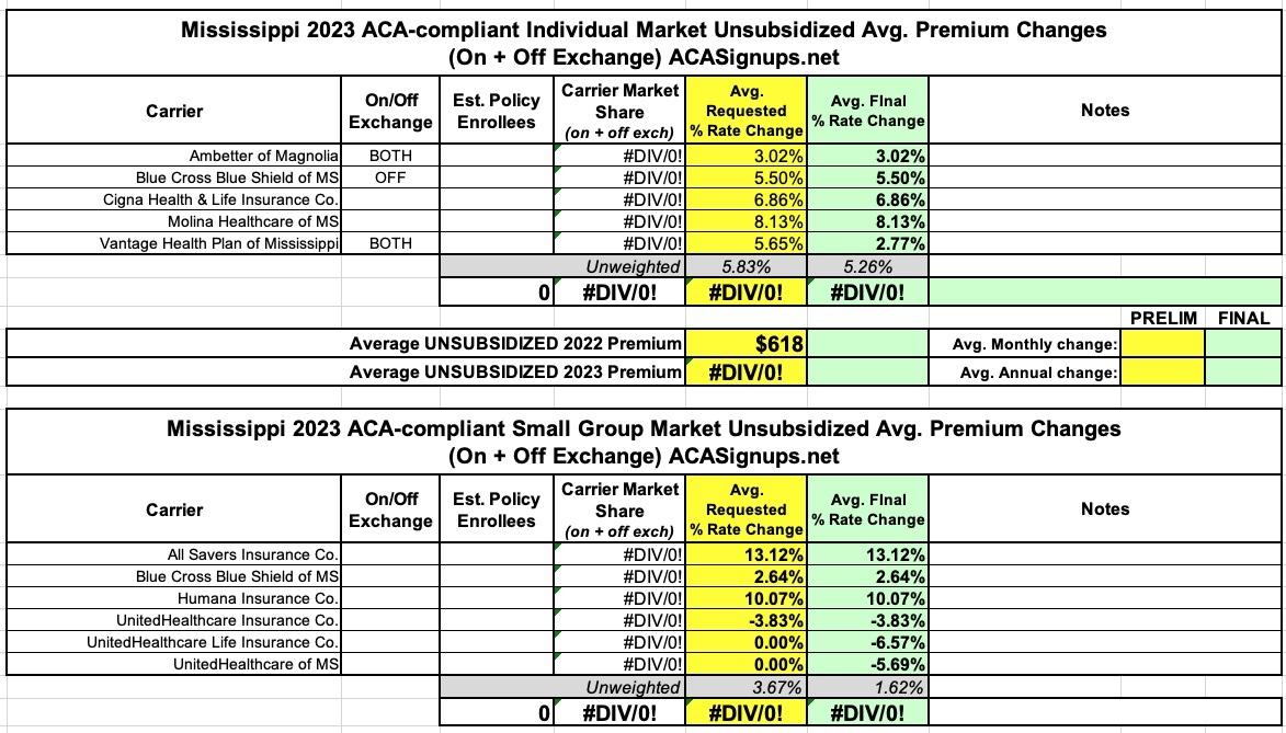Unfortunately, Mississippi is one of the states which provided zero useful rate filing data for my purposes (preliminary or final) prior to the 2023 Open Enrollment Period launching, so I had to wait until now to post anything about it.