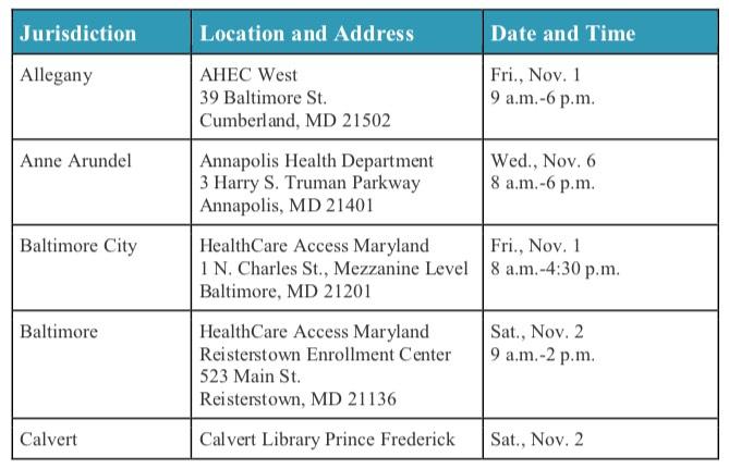 - To kick off open enrollment, nearly 20 statewide “Get Connected” events with experts providing free enrollment assistance and answering questions will be held around Nov. 1- 9. Visit the website for details or follow #GetConnected @MarylandConnect on Facebook, Twitter and Instagram.