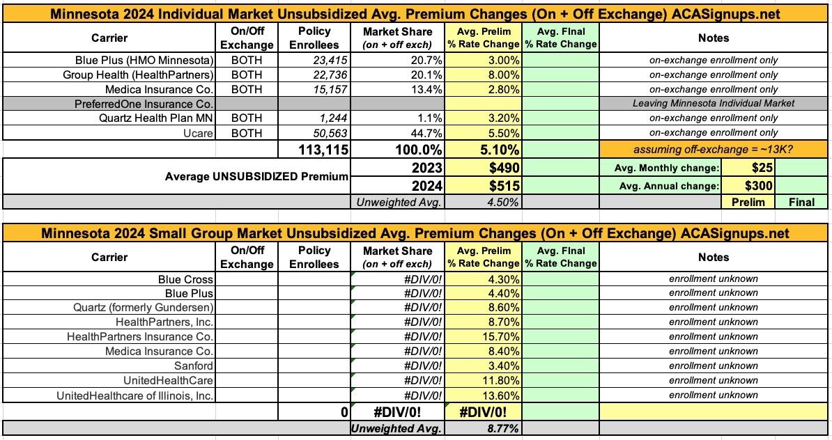 Minnesota: Preliminary avg. unsubsidized 2024 #ACA rate change: +5.1%
