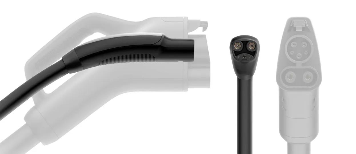 • The NACS connector/cables are much lighter, thinner and less bulky than the "CCS" (Combined Charging System) connectors