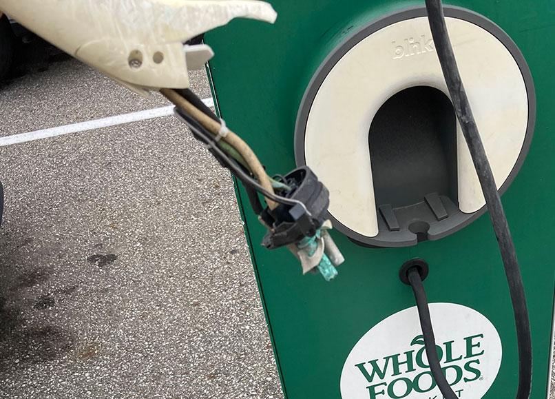 • Apparently there's also been major problems with people vandalizing EV charging units. This is a Blink charger in a Whole Foods parking lot. I don't know if this was random vandalization or if it's some sort of MAGA/"anti-WOKE" garbage in the same vein as the "rolling coal" idiocy, but regardless, it meant this station was out of commission (fortunately there was a brand-new EVgo fast charger station nearby as well).