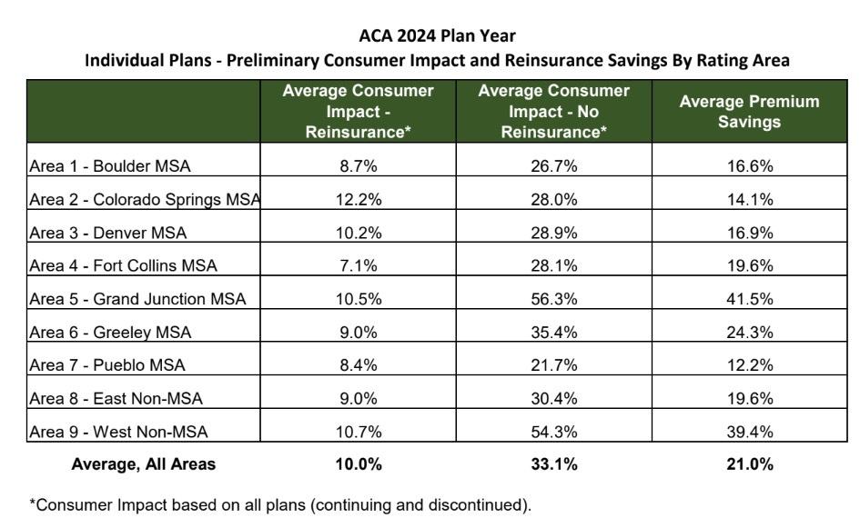 Colorado: Preliminary avg. unsubsidized 2024 #ACA rate changes: +9.8%