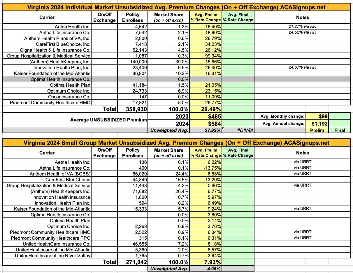 It's important to note that even if the Virginia legislature does come to an agreement and the program is locked in for 2024, if this happens after the deadline for carriers to sign the final contracts (in mid-September), it will be too late; the 2024 rates will be locked in regardless, although this should also mean massive Medical Loss Ratio refunds being issued the following year.
