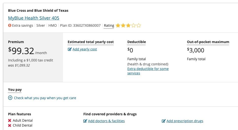 The thing is, this Bronze plan would be a terrible choice for them anyway. They'd be much better off choosing the Gold BCBSTX plan: