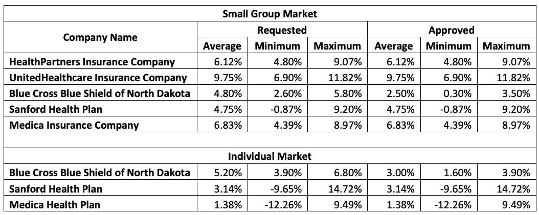 Insurance companies annually submit proposed rates and benefit changes to the North Dakota Insurance Department. All plan elements and rates are reviewed and potentially altered to ensure compliance and financial viability of what is being offered.