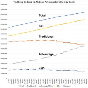 - Medicare Advantage beneficiaries reached 33,621,756...up an equally stunning 987,686.