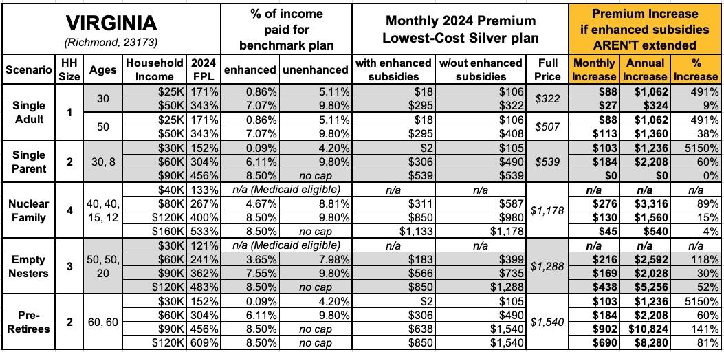 State by State: How much more will YOU pay if the enhanced ACA subsidies aren't extended? (Virginia - Wyoming)