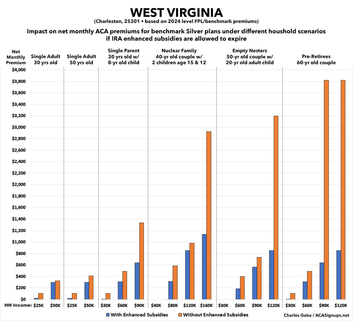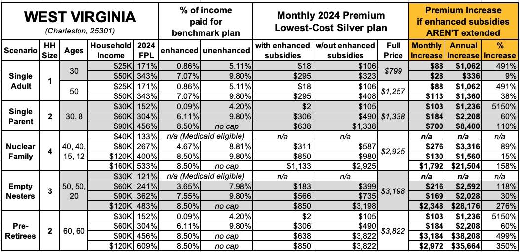 That's the macro level, however. As I did a couple of years ago when the subsidies were originally at risk of expiring in 2023, I decided to run the numbers myself to get an idea of just how much enrollees real-world health insurance premiums would go up in the event the ARPA/IRA subsidies are indeed allowed to expire at the end of next year.