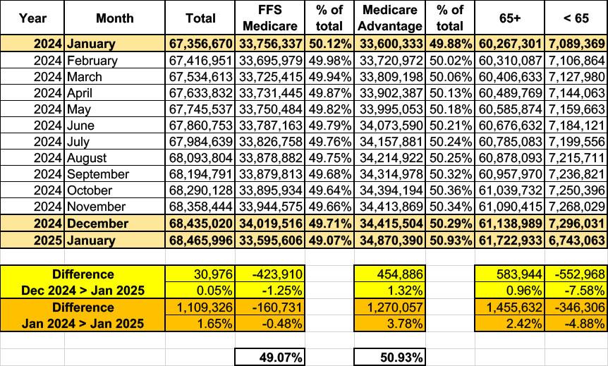 Musk/Trump Regime posts what they claim to be Jan 2025 Medicare enrollment data