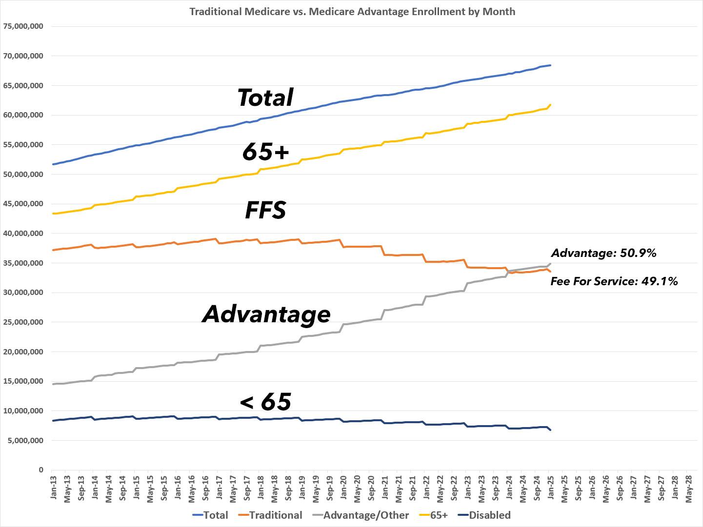 So far, after a 2-month initial delay, the Musk/Trump Regime has been posting updated Medicare enrollment data roughly once per month. We'll see if that continues.