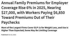 Annual Family Premiums for Employer Coverage Rise 6% in 2025, Nearing $27,000, with Workers Paying $6,850 Toward Premiums Out of Their Paychecks