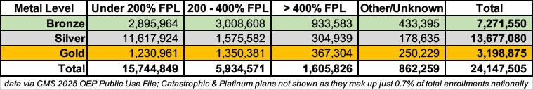 Also, the ~11% gross benchmark premium drop would be relative to the 26% average gross premium increase for 2026. Gross premiums would still be ~12% higher than they are in 2025 even if the 11% drop applied to all plans, which it wouldn't.