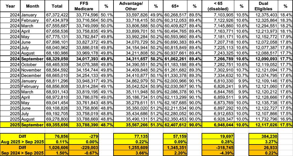 CMS posts claimed September 2025 Medicare enrollment; over 51% now enrolled in Med Advantage