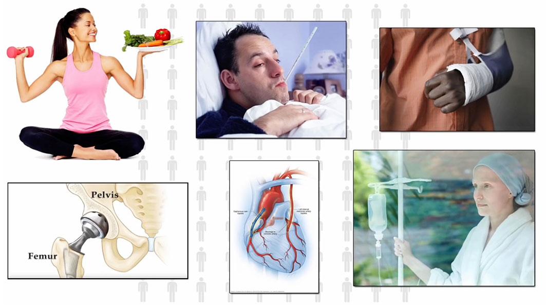 Some of them won't require anything more than an annual physical. Some may come down with a nasty flu. Some may break their finger and require a splint or physical therapy. Some of them may require complex surgery like a coronary bypass.