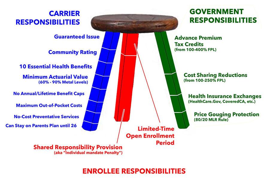 In short, the ACA uses a THREE-Legged Stool instead, based on the Massachusetts model: