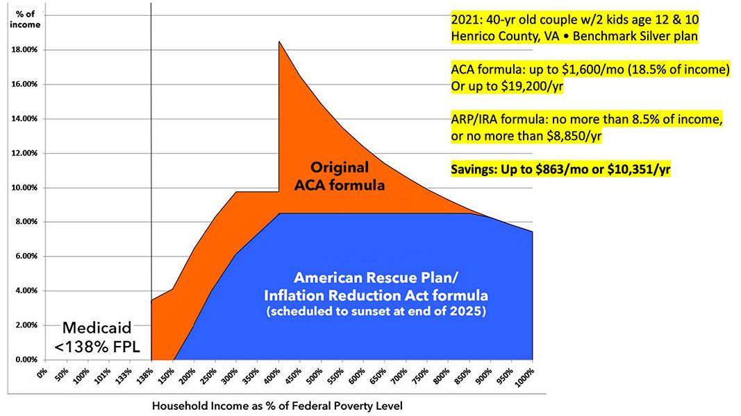 So, in 2021, the Democratics in Congress made the premium subsidies significantly more generous, while also expanding them so that NO ONE has to pay more than a maximum of 8.5% of their household income in premiums. The Inflation Reduction Act extended these enhanced subsidies, but only through the end of 2025...which brings us up to today.