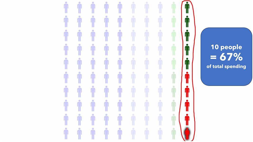 That leaves the remaining 10% racking up the other 2/3, including one poor soul who would require hundreds of thousands of dollars in healthcare spending per year.