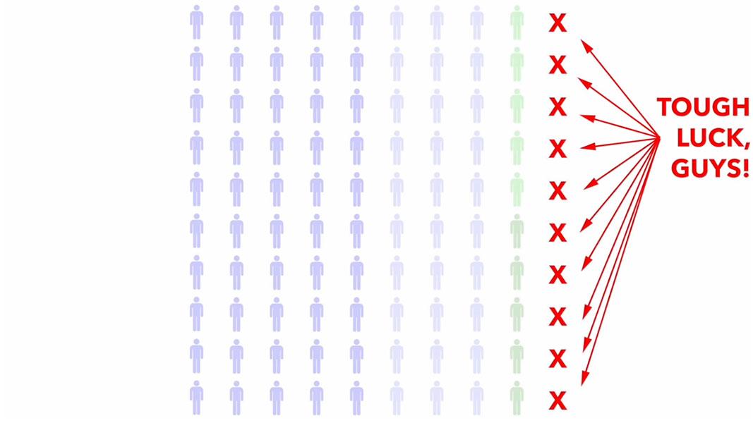 Let's suppose we boil the entire population down to exactly 100 people.