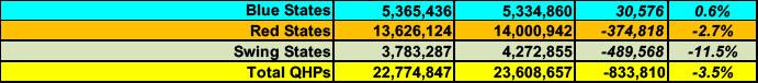 Enrollment in the 19 blues states (+DC) is actually up slightly so far, for reasons I'll get to in a moment.