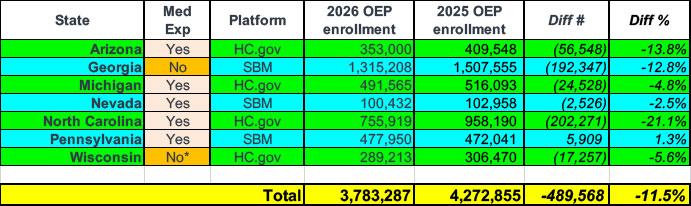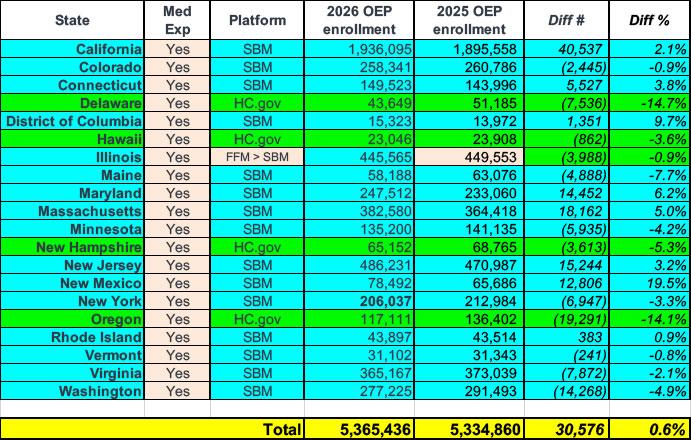 In any event, it will be interesting to see what 2026 OEP enrollment looks like when the dust settles, although that report may not be released until as late as early May, and even then, the effectuated enrollment data (which is the truer measure of how many people are actually enrolled in effectuated coverage) might not be published until sometime in July.
