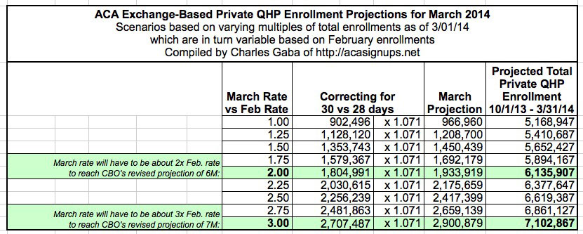 For months now, I've been pointing out that while the CBO's original 7 million overall Private QHP projection seemed reasonable at the time, the CMS's state-by-state projections to achieve that 7 million goal never made any sense, and in some cases were flat-out ludicrious. States like New York and Kentucky were assigned the same enrollment target even though NY's population is 4.5x the size of KY's, and so on.