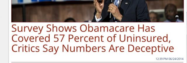 Um...no, Ms. Bleau, there has been no survey released which has made any such claim whatsoever. The Kaiser Family Foundation survey you're referring to states that 57% of the people who enrolled in QHPs via the ACA exchanges were previously uninsured. That is, 57% of the 8.02 million people who enrolled via the exchanges, or around 4.6 million (or, if you subtract those who haven't paid their first premiums yet, around 4.1 million).
